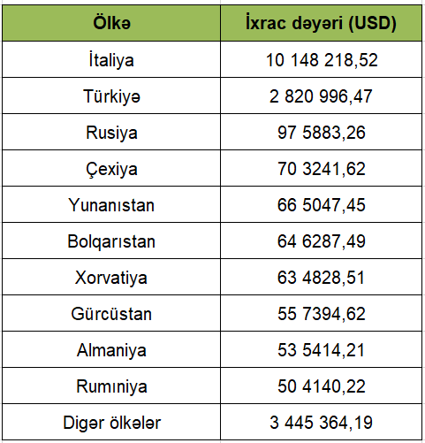 Xatırladaq ki, ötən ilin eyni dövründə ölkənin ixrac etdiyi mal və məhulların dəyəri 22 milyard 742 milyon 283.66 min ABŞ dolları təşkil edib.
