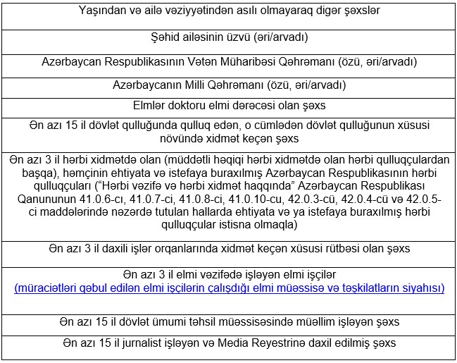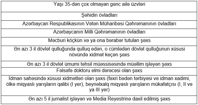 Valyuta.az aşağıdakı cədvəldə hansı kateqoriyada olan vətəndaşların güzəştli mənzil sahibi ola biləcəyini təqdim edir: