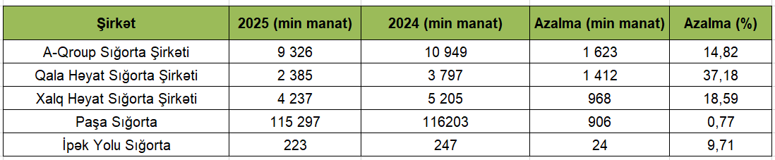 Müştərilərinə az ödəniş edən sığorta şirkətləri - SİYAHI