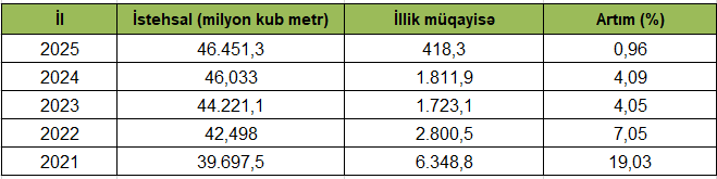Azərbaycanda son 5 ildə nə qədər təbii qaz istehsal olunub?