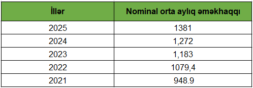 Azərbaycanda son 5 ildə orta aylıq əməkhaqqı nə qədər olub? - CƏDVƏL