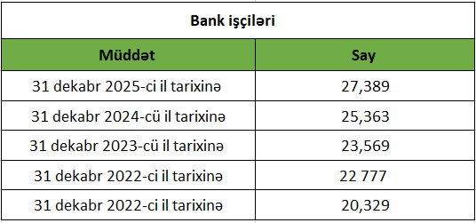 Son 5 il ərzində bank sektorunda çalışan işçilərin sayı isə cədvəldə göstərildiyi kimi dəyişib.