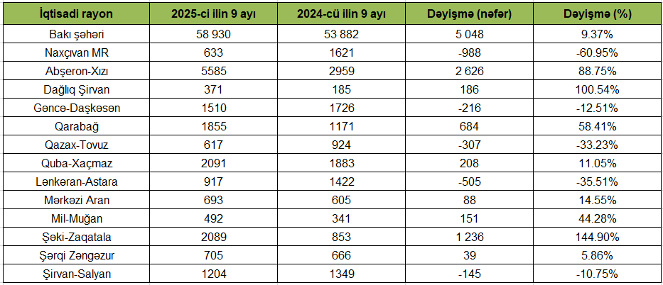 2025-ci ilin yanvar-sentyabr aylarında Azərbaycanda 77 min 692 yeni iş yeri açılıb.