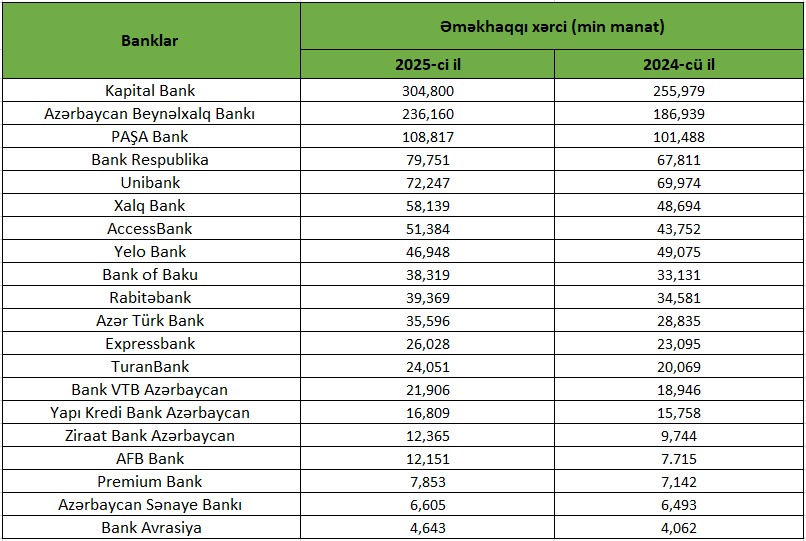2024 və 2025-ci ilin IV rübündə bankların əməkhaqqı xərci aşağıdakı kimi olub: