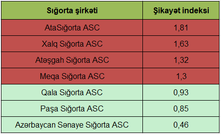 Valyuta.az xəbər verir ki, avtomobillərin icbari sığortası üzrə ən çox şikayət edilən şirkətlərin siyahısında ilk sırada 1,81 indeksi ilə AtaSığorta ASC yer alıb.