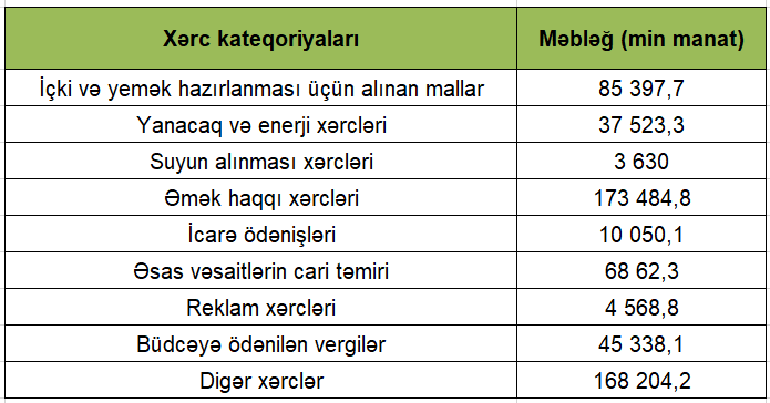 Hotellərin xərclərində 24 milyonluq artım - Ən çox içki və yeməklərə xərc çəkilib