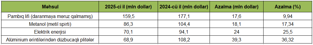 02.02.2026İxracdan gəlirləri azalan məhsullar - Məbləğ, Siyahı
