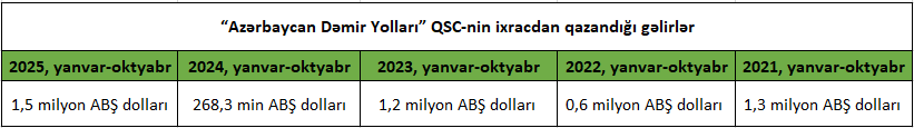 "Azərbaycan Dəmir Yolları" ixracdan nə qədər qazanıb? - Son 5 il