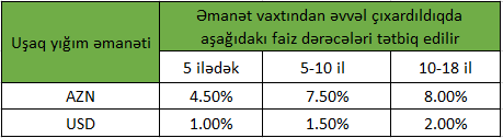 Qeyd edək ki, əmanətdən vəsait yalnız müddət başa çatdıqda, yəni son tarixdə götürülə bilər. Qismən çıxarışa icazə verilmir.