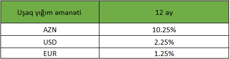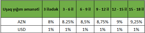 Qeyd edək ki, hər bir məhsul valideynlərə fərqli müddət, valyuta seçimi və faiz dərəcələri ilə uzunmüddətli qənaət imkanı yaradır.