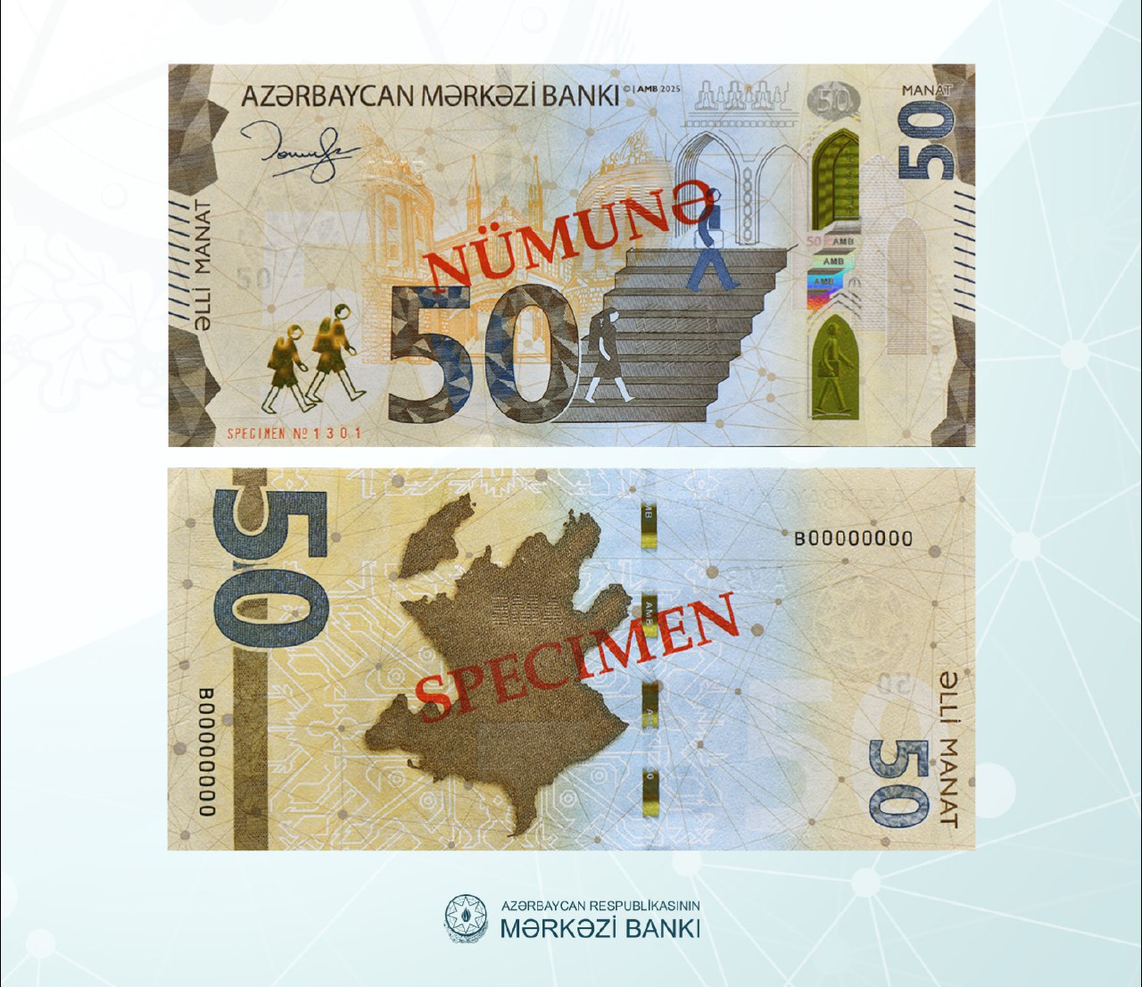 Другие элементы дизайна и технические параметры обновленной банкноты номиналом 50 манатов остались неизменными в соответствии с находящейся в обращении банкнотой того же номинала. Купюра будет находиться в обращении параллельно с денежными знаками того же номинала, которые уже находятся в обороте.