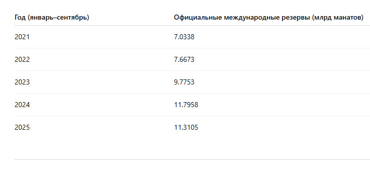 В первые девять месяцев 2024 года международные резервы составляли 11 млрд 795,8 млн манатов.